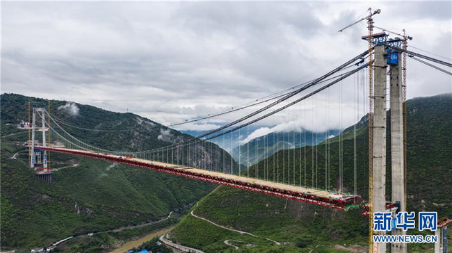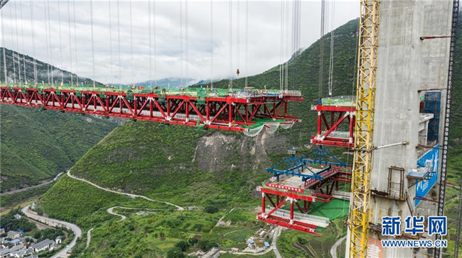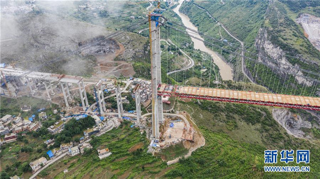 正在拼裝最后一片鋼桁梁的赤水河大橋(5月30日無(wú)人機(jī)拍攝)。新華社記者 陶亮 攝