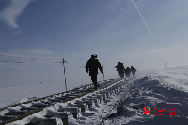 “我們是2018年11月進入風(fēng)區(qū)作業(yè)的,這也是我第一次在暴風(fēng)雪中施工。在風(fēng)區(qū),六七級風(fēng)是家常便飯,風(fēng)雪打得臉生疼不說,新鋪的鋼軌經(jīng)常被移雪掩埋,鋪軌列車動彈不得,只能人工清雪,清理一步走一步,被埋沒的鐵軌剛清完轉(zhuǎn)眼又被雪埋了。”葉輝說,“今年1月底的一個暴風(fēng)雪天,接送上下班的列車?yán)г诹税肼?,公路實施了交通管制,施工隊被困工地。大家互相鼓勁,在風(fēng)雪中艱難跋涉8公里多,才到達營救車??康奈恢谩4汗?jié)誰也沒有回家,都堅守在工地上,就為再多挺進一米。”