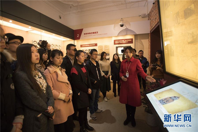 武漢大學的學生參觀武漢中共中央機關舊址紀念館(2017年3月26日攝)。新華社記者 熊琦 攝