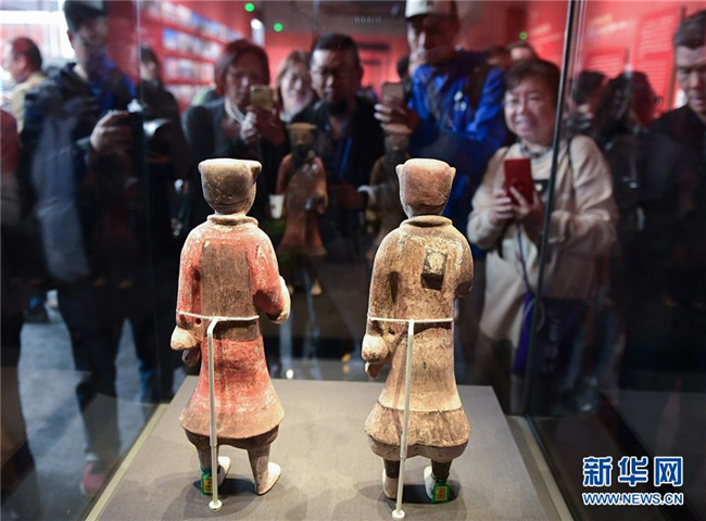 觀眾在中國國家博物館舉行的“歸來——意大利返還中國流失文物展”上欣賞文物。展覽展出了700余件意大利返還中國的文物藝術品(2019年4月24日攝)。新華社記者 李賀 攝