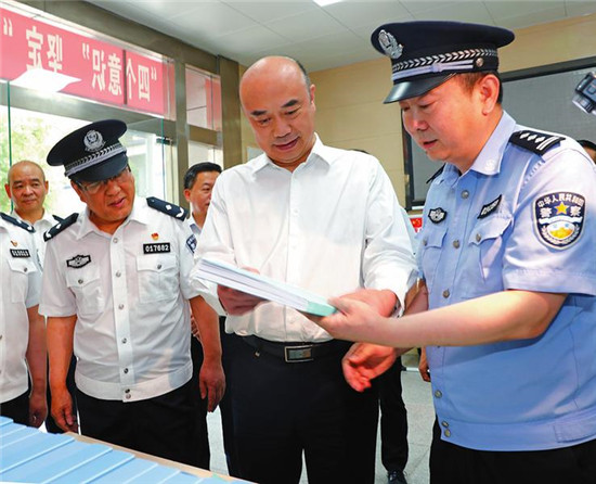 6月12日,省長劉國中在西安市公安局經(jīng)開分局調(diào)研掃黑除惡專項(xiàng)斗爭情況。 亢建偉攝