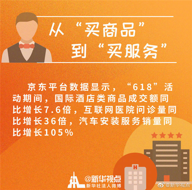 服務型消費商品在這個“618”強勢崛起。京東平臺數(shù)據(jù)顯示,6月1日至18日,國際酒店類商品成交額同比增長7.6倍,互聯(lián)網(wǎng)醫(yī)院問診量同比增長36倍,汽車安裝服務銷量同比增長105%。蘇寧在“618”期間推出主打快遞代收代寄、家電維修清洗的“1小時服務圈”,受到消費者歡迎……