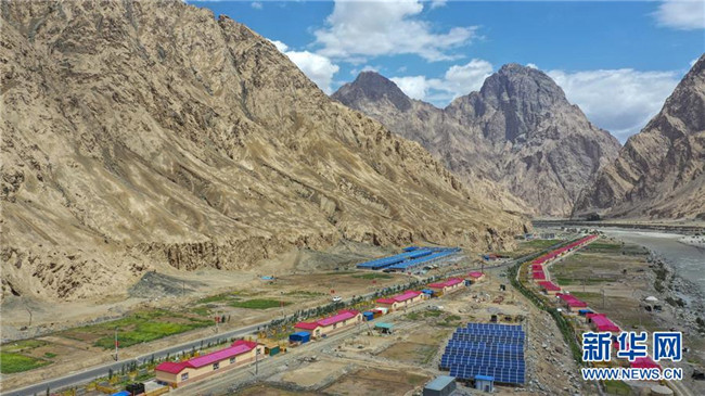 這是在新疆塔什庫爾干塔吉克自治縣大同鄉(xiāng)克其克同村拍攝的一處易地扶貧搬遷安置點(6月18日無人機拍攝)。新華社記者胡虎虎攝