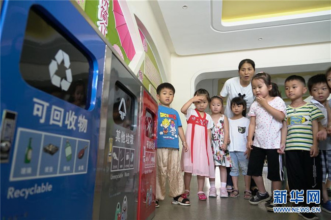 當(dāng)日,浙江省湖州市德清縣乾元鎮(zhèn)第一幼兒園的小朋友在老師和家長(zhǎng)的帶領(lǐng)下,通過(guò)唱童謠、做游戲等形式,輕松學(xué)習(xí)垃圾分類相關(guān)知識(shí),為維護(hù)環(huán)境衛(wèi)生作出努力。