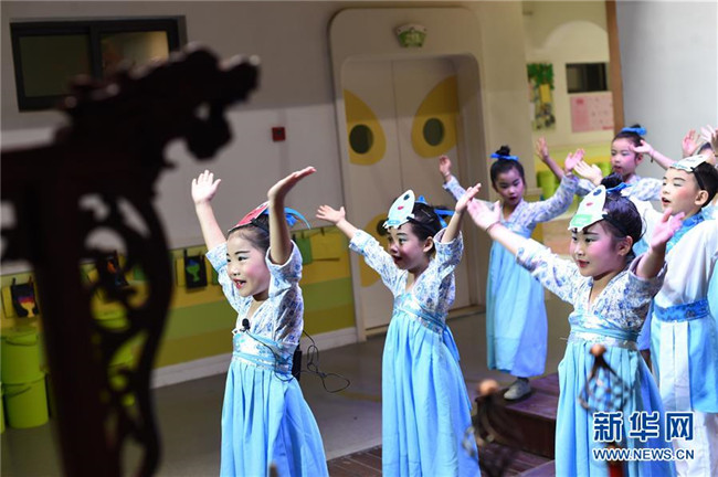 7月4日,德清縣乾元鎮(zhèn)第一幼兒園小朋友們?cè)诔诸悆焊?。新華社記者 郭緒雷 攝