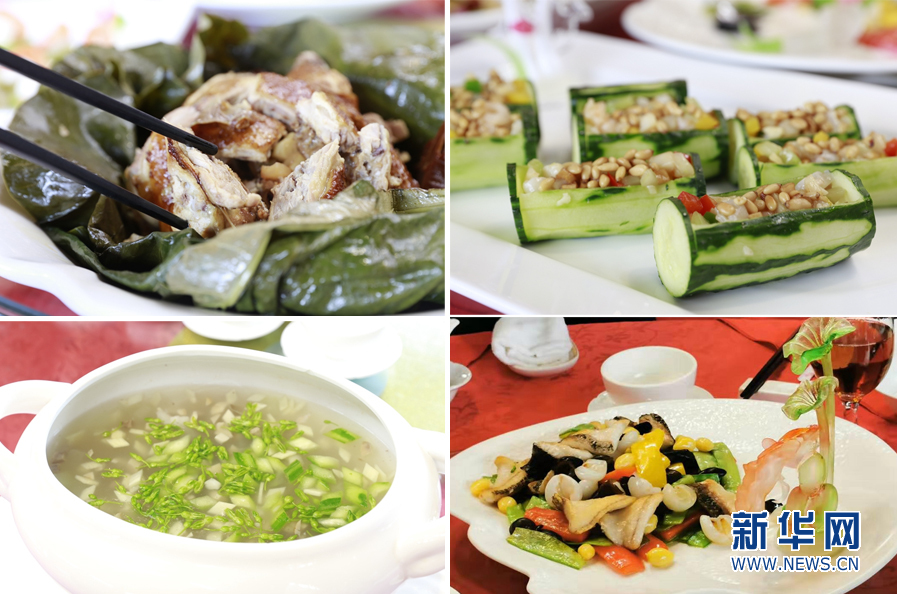 本次荔枝宴共有泮塘綠叢荔荷雞、魚潛荔水芳四溢,以及禾桿藏珠荔香透等10道菜肴。新華網(wǎng) 林曉蕾攝
