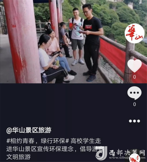 活動(dòng)還通過(guò)高校網(wǎng)絡(luò)紅人拍攝抖音“青春最美,華山見(jiàn)證”主題短視頻等傳播方式,在網(wǎng)絡(luò)線(xiàn)上形成熱度,為華山綠色環(huán)保游提供了新方式。