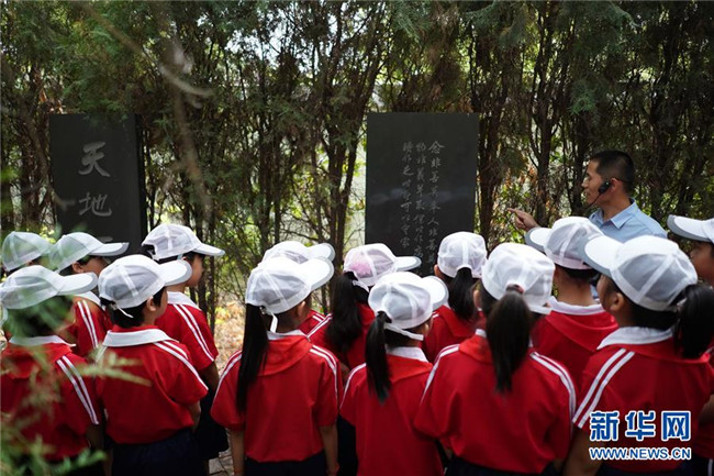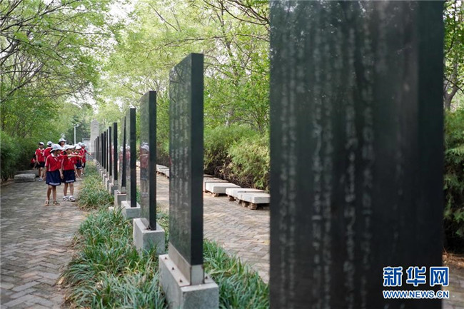 當日,河北省邢臺市巨鹿縣育新小學組織學生前往位于該縣縣城的邢臺市愛國主義教育基地——愛華翰苑碑林,聽講解員講解碑上鐫刻的熱愛祖國、熱愛家鄉(xiāng)等歷代名言警句,過一個有意義的暑假。 新華社記者 牟宇 攝