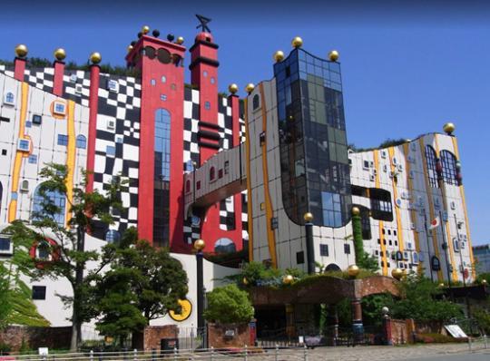 而在《名偵探柯南》里出現(xiàn)的垃圾處理廠也有真實(shí)場景。由宮崎駿的偶像百水先生進(jìn)行外觀設(shè)計(jì)的大阪舞洲島垃圾處理廠,遠(yuǎn)遠(yuǎn)看去仿佛游樂場,不知情的人絕不會把它和垃圾聯(lián)系在一起。處理廠干凈整潔、色彩明亮得恍若安徒生的童話世界,紅黃的條紋象征著燃燒的火焰,形態(tài)各異的可愛窗子與爬山虎裝點(diǎn)著墻壁,標(biāo)志性的長管煙囪令人想起長發(fā)公主的城堡……