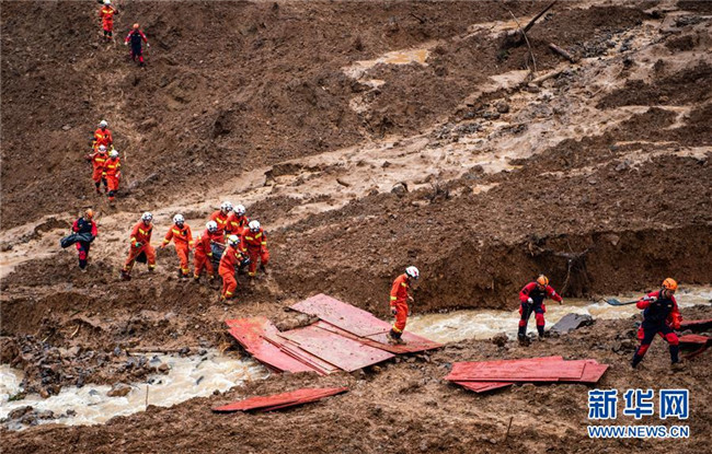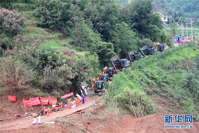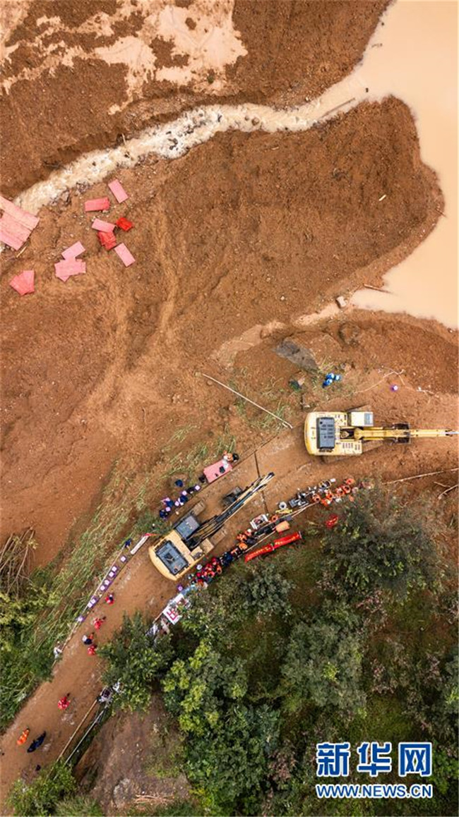 7月24日,救援人員在山體滑坡現(xiàn)場(chǎng)開(kāi)展救援。 新華社記者 陶亮 攝