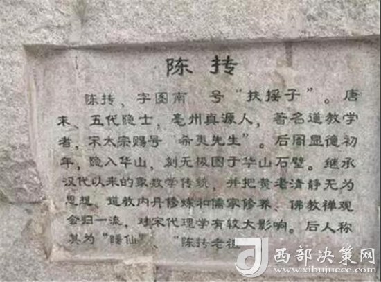 陳摶:陳摶(872年—989年),字“圖南”,號(hào)“扶搖子”、“希夷先生”(“希”指視而不見,“夷”指聽而不聞),常被視為神仙,尊稱為陳摶老祖、希夷祖師等。主張以睡眠,休養(yǎng)生息,時(shí)常一眠數(shù)日,人稱睡仙。相傳紫微斗數(shù)及無極圖說皆為陳摶之創(chuàng)作。五代末,宋朝初期亳州真源(今河南鹿邑)人,著名華山派道士。