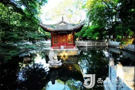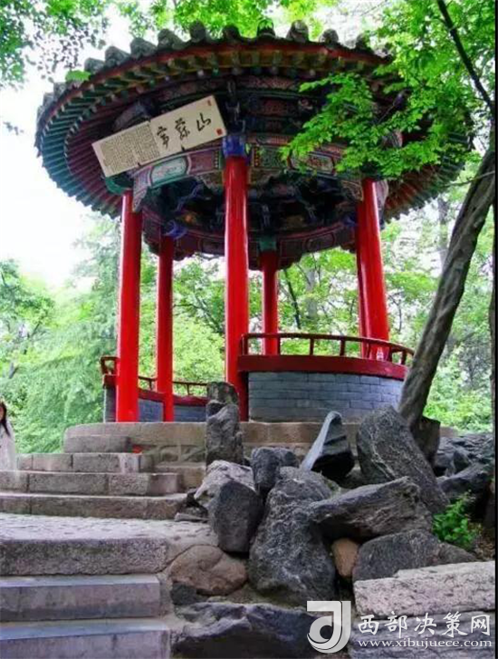 康有為曾寫詩贊美道:“谷口清泉引曲流,長(zhǎng)廊迴醫(yī)樹無憂。泉水岳色可忘出,讓與希夷睡萬秋。”