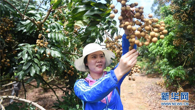 7月24日,一名游客在欽州市欽南區(qū)麗光華僑農(nóng)場龍眼園內(nèi)采摘龍眼。