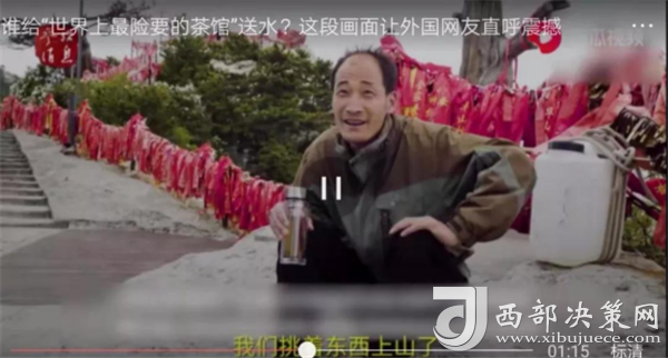 視頻介紹,煮茶所需的水都是挑山工肩挑背扛運(yùn)上來的。