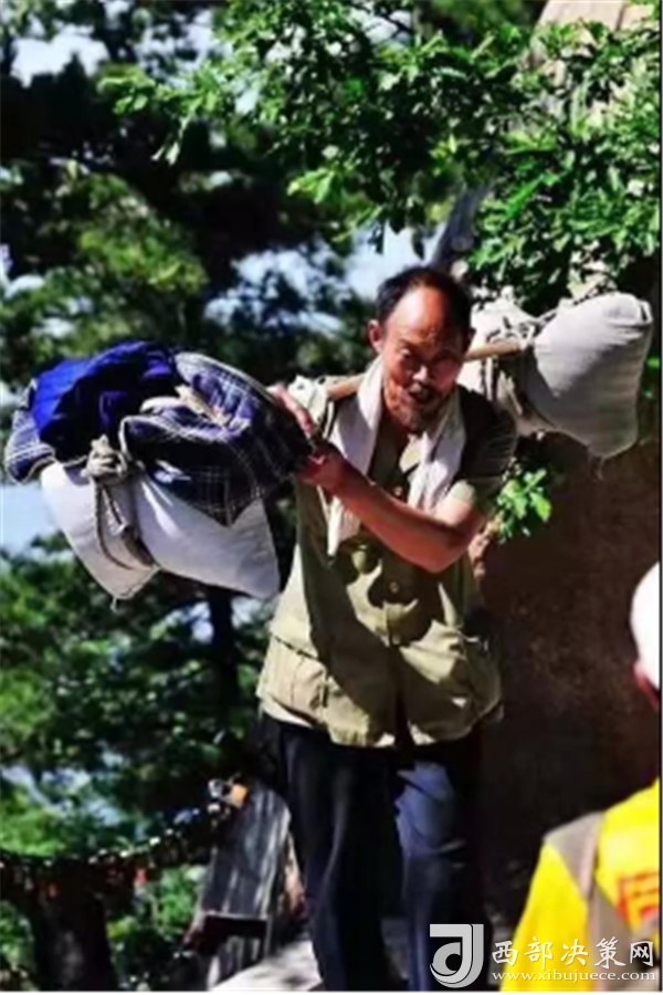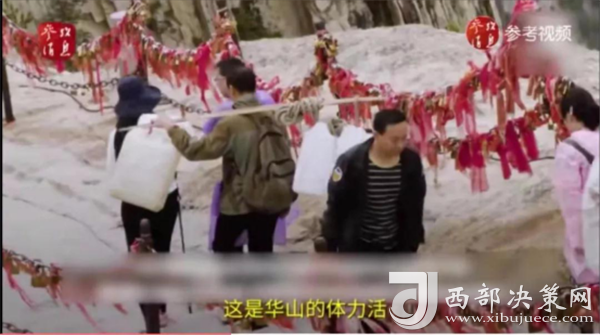 一位挑山工說:挑夫這個(gè)苦力活,已經(jīng)沒有年輕人來做。如今35歲以下的年輕人,對這個(gè)活瞧不上眼,寧可閑著,也不做挑夫。但是,華山景區(qū)的正常運(yùn)營及后期建設(shè),必須依賴于挑夫。這活兒,總得有人做。