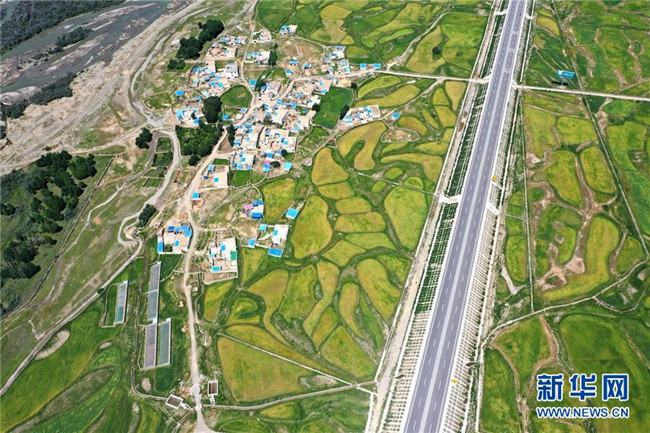 初秋,西藏拉(薩)林(芝)公路沿線的河流、村落、農(nóng)田等構(gòu)成一幅幅美麗畫卷。 新華社記者 普布扎西 攝