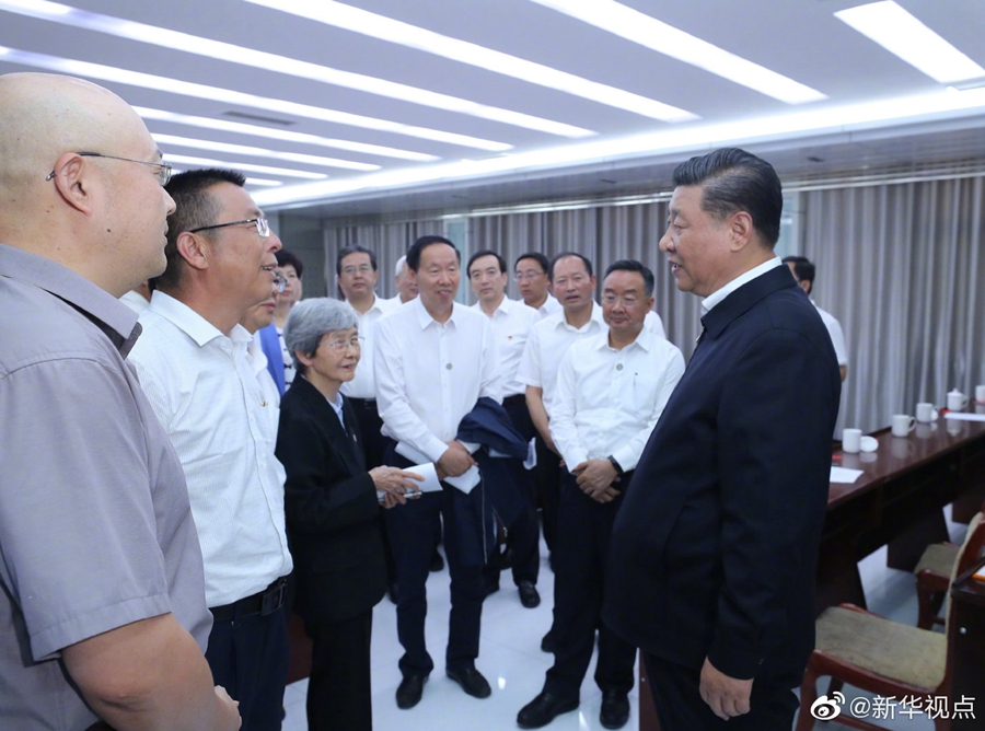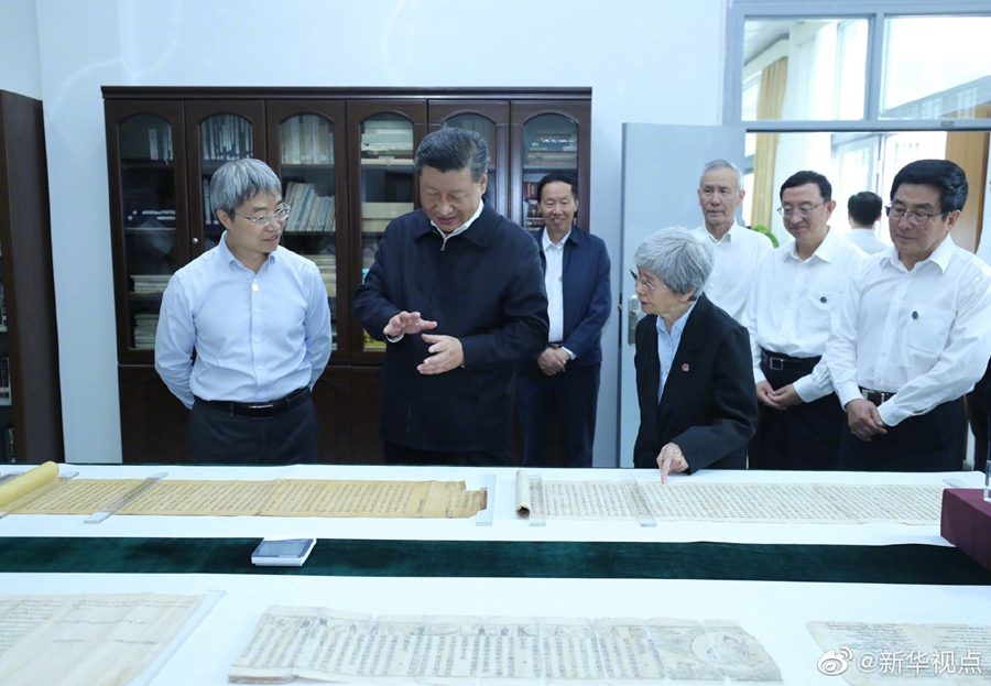 習近平總書記19日下午來到敦煌研究院,察看珍藏文物和學術成果展示,并同有關專家、學者和文化單位代表座談。(文字:張曉松、朱基釵 攝影:鞠鵬、謝環(huán)馳)