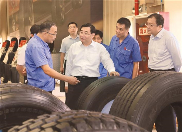 胡和平來到陜西建工金牛集團,聽取生產(chǎn)經(jīng)營情況介紹,得知企業(yè)近年來通過技術改造升級和服務模式創(chuàng)新實現(xiàn)較大發(fā)展,他十分高興,要求聚焦鍋爐制造領域,鞏固產(chǎn)業(yè)優(yōu)勢,擴大產(chǎn)能規(guī)模,實現(xiàn)更大效益。在延長石油西北橡膠公司,胡和平察看鋼絲壓延、裁剪接合、一次成型等工藝流程,詢問產(chǎn)品性能、技術特點、市場份額,勉勵公司加強核心技術攻關,提升產(chǎn)品質量,在市場競爭中更好掌握主動。