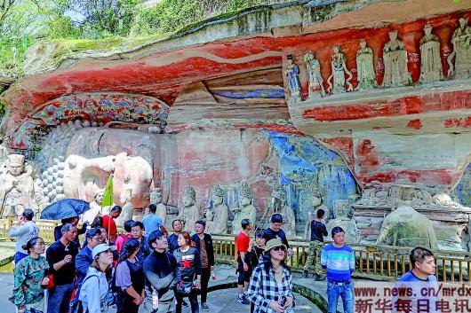 游客在世界文化遺產(chǎn)——大足石刻的寶頂山景區(qū)參觀。記者 劉潺 攝