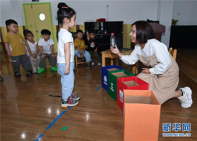 9月4日,孩子們通過(guò)趣味游戲?qū)W習(xí)垃圾分類的知識(shí)。