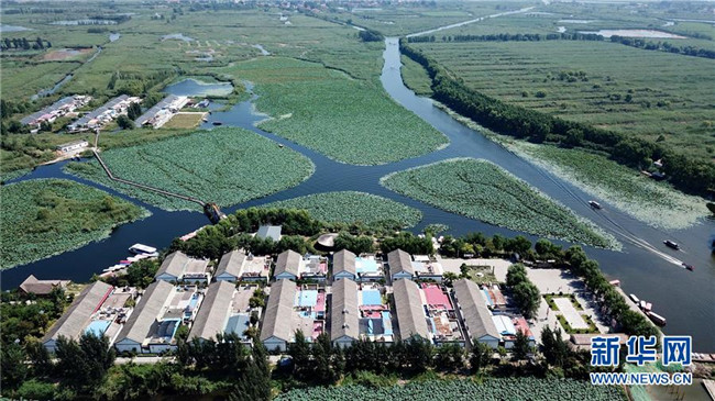 游客在白洋淀景區(qū)內(nèi)游覽(8月31日無人機拍攝)。 新華社記者 牟宇 攝