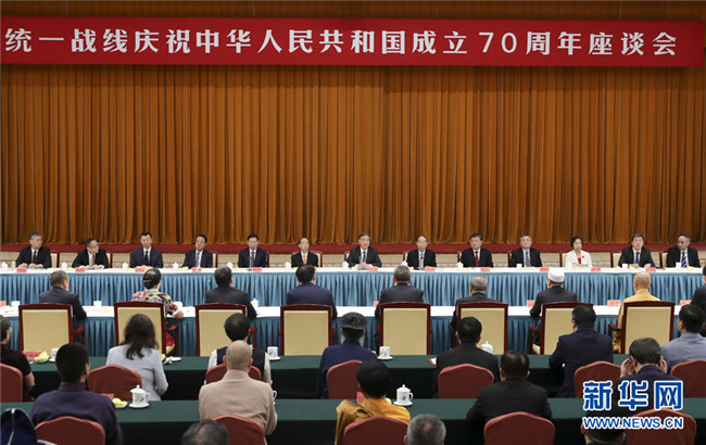 統(tǒng)一戰(zhàn)線慶祝中華人民共和國成立70周年座談會11日在京召開。中共中央政治局常委、全國政協(xié)主席汪洋出席會議并講話。他強調,統(tǒng)一戰(zhàn)線是中國共產黨領導的廣泛政治聯(lián)盟,具有鮮明的中國特色,過去是、現(xiàn)在是、今后仍然是黨的事業(yè)取得勝利的重要法寶。要以習近平新時代中國特色社會主義思想為指導,深入學習貫徹習近平總書記關于加強和改進統(tǒng)一戰(zhàn)線工作的重要思想,切實把中共中央對統(tǒng)一戰(zhàn)線的決策部署落實下去、把廣大統(tǒng)一戰(zhàn)線成員的智慧力量凝聚起來,為實現(xiàn)中華民族偉大復興的中國夢共同奮斗。