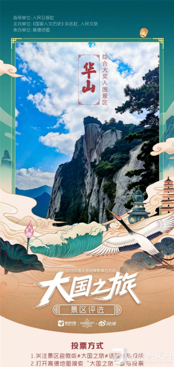 2019大國之旅景區(qū)評選活動由人民日報社指導,《國家歷史人文》雜志社、人民旅游主辦,高德地圖承辦,于9月2日正式啟動。此次活動采取大眾投票+高德地圖旅游大數(shù)據(jù)+專家及媒體評審相結合的形式,得出最終獲獎名單。游客通過新浪微博關注景區(qū)官博“ 大華山智慧旅游”為華山景區(qū)投票,智旅公司協(xié)助高德地圖完善了華山景區(qū)地圖板塊的校準和更新,此次活動的開展,華山景區(qū)的品牌影響力和知名度也再次得到提升。