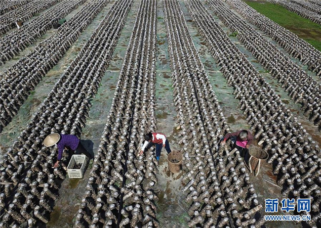 農(nóng)民在貴州省銅仁市萬山區(qū)敖寨鄉(xiāng)中華山村的食用菌基地里采摘木耳(2018年10月29日無人機拍攝)。 近年來,貴州省圍繞產(chǎn)業(yè)選擇、培訓農(nóng)民、技術服務、資金籌措、組織方式、產(chǎn)銷對接、利益聯(lián)結、基層黨建等“八要素”,通過“減、融、服”創(chuàng)新推進農(nóng)村產(chǎn)業(yè)結構調(diào)整,既帶動了農(nóng)戶增收,也推動了特色產(chǎn)業(yè)做大做強。 新華社記者 楊文斌 攝