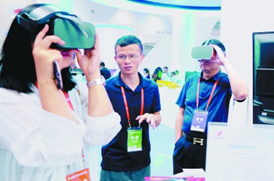 7月5日第二十屆中國海外學(xué)子創(chuàng)業(yè)周上,觀眾體驗(yàn)VR產(chǎn)品(圖源:新華社)