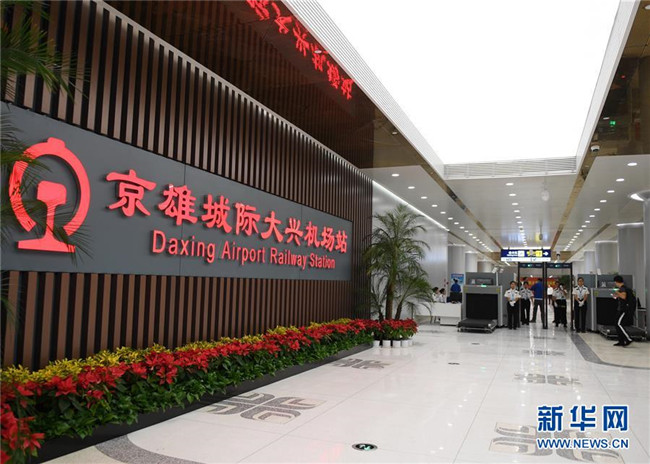 9月26日拍攝的京雄城際大興機場站大廳。新華社記者 張晨霖 攝