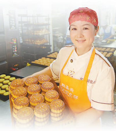 劉家果子鋪老板娘姚秀君在做糕點(diǎn)。林松 攝