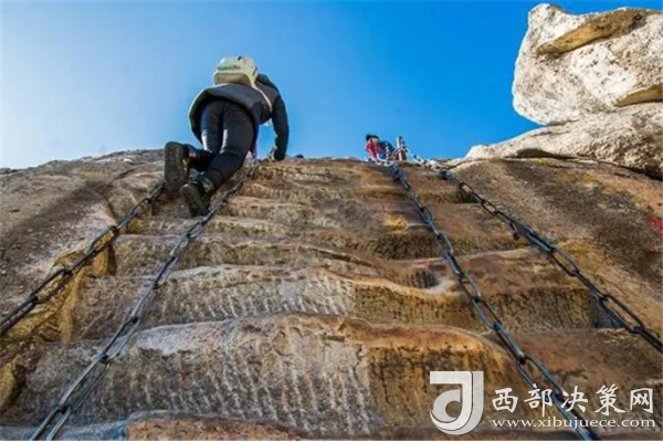 華山山勢極為陡峭,頂部諸峰外圍為斷層割切,成直立形懸崖,側(cè)面均為千仞峭壁,僅有一條極為狹窄的嶺脊(蒼龍嶺)與之相通,其險峻特征在五岳中絕無僅有,這也是華山地貌形態(tài)的一大特點。(供稿:華旅集團營銷中心)