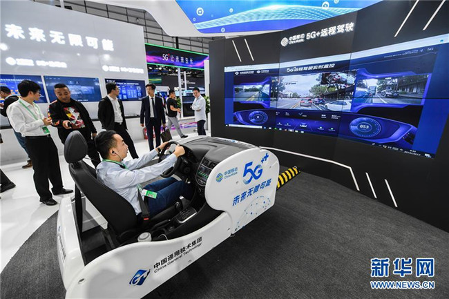 這是互聯(lián)網(wǎng)之光博覽會(huì)現(xiàn)場(chǎng)展示的基于5G技術(shù)的遠(yuǎn)程駕駛系統(tǒng)(10月18日攝)。 新華社記者 徐昱 攝