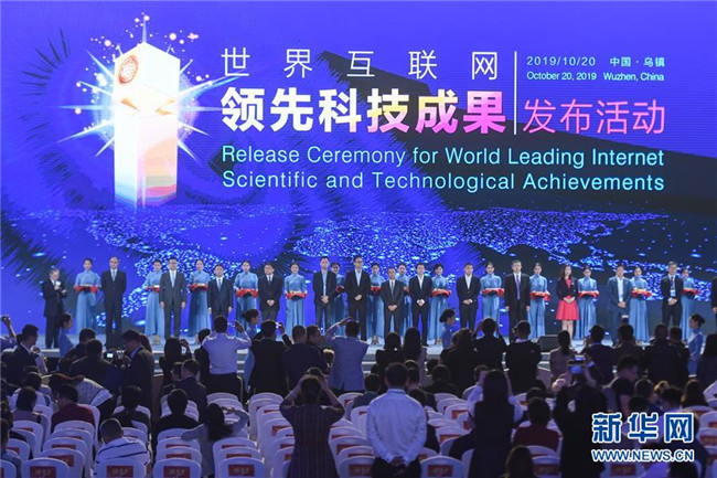 10月20日,15項(xiàng)世界互聯(lián)網(wǎng)領(lǐng)先科技成果在浙江烏鎮(zhèn)召開(kāi)的第六屆世界互聯(lián)網(wǎng)大會(huì)上發(fā)布,這是出席發(fā)布活動(dòng)的代表在臺(tái)上合影。 新華社記者 黃宗治 攝