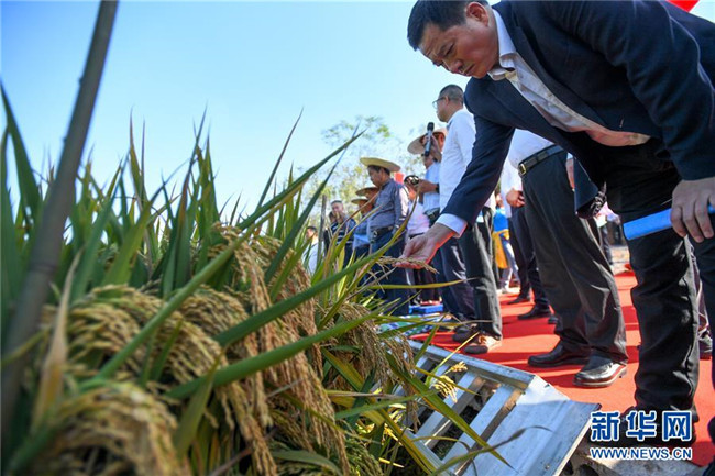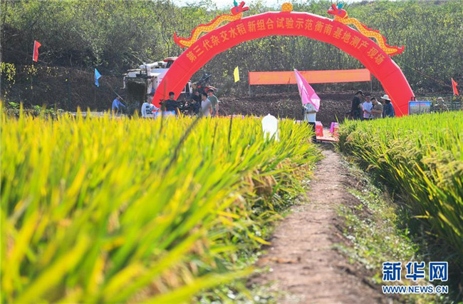 這是第三代雜交水稻新組合試驗示范衡南基地測產(chǎn)現(xiàn)場(10月21日攝)。 新華社記者 陳澤國 攝