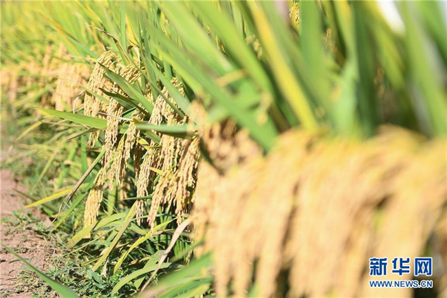 這是第三代雜交水稻新組合試驗示范衡南基地測產(chǎn)現(xiàn)場待收割的水稻(10月21日攝)。 新華社記者 陳澤國 攝