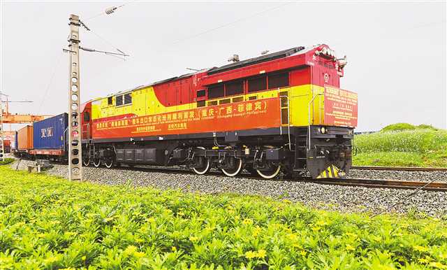 滿載125臺(tái)整車的專列從重慶沙坪壩區(qū)團(tuán)結(jié)村中心站駛出,標(biāo)志著西部陸海新通道整車出口常態(tài)化班列的開啟。(本報(bào)資料圖片) 記者 羅斌 攝