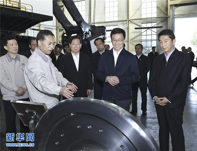 太原重型機(jī)械集團(tuán)有限責(zé)任公司是新中國自行設(shè)計建設(shè)的第一座重型機(jī)械廠。韓正來到這里,考察礦山挖掘機(jī)、高鐵輪對等先進(jìn)機(jī)械研發(fā)生產(chǎn)情況。韓正強(qiáng)調(diào),重型機(jī)械是國之重器,是先進(jìn)制造業(yè)的重要支撐,要加快產(chǎn)品智能化步伐,提高生產(chǎn)線和生產(chǎn)設(shè)備的國產(chǎn)化率,實(shí)現(xiàn)精密零部件加工的技術(shù)突破,積極拓展“一帶一路”沿線國家市場,加強(qiáng)人才隊伍建設(shè),打造具有國際競爭力的高端裝備制造產(chǎn)業(yè)。韓正走進(jìn)生產(chǎn)車間,勉勵一線工人抓住轉(zhuǎn)型升級機(jī)遇,推動企業(yè)加快發(fā)展,實(shí)現(xiàn)個人價值。