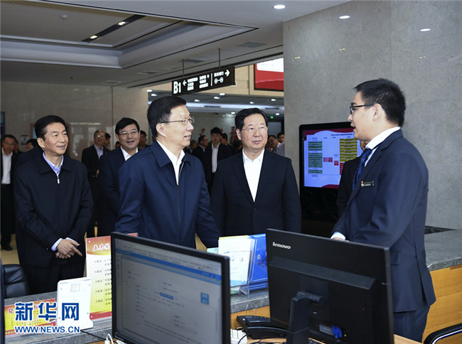 10月21日至22日,中共中央政治局常委、國務(wù)院副總理韓正在山西省調(diào)研。這是10月21日,韓正來到山西省政務(wù)服務(wù)中心,考察政府職能轉(zhuǎn)變和“放管服”改革推進(jìn)情況。新華社記者燕雁攝