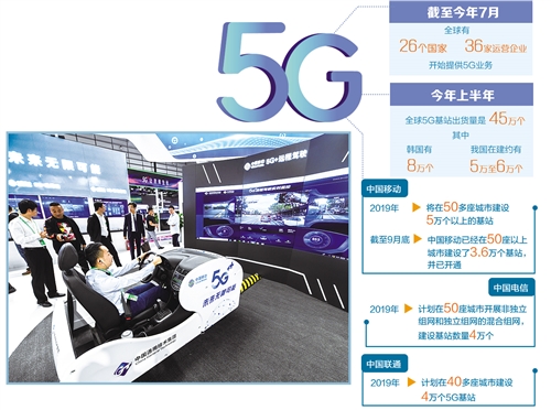 目前,運營企業(yè)相繼發(fā)布了5G品牌和計劃。“中國移動的5G建設(shè)起步早,投入大。”中國移動研究院副院長黃宇紅介紹說,在投入方面,中國移動明確2019年將在50多座城市建設(shè)5萬個以上的基站。截至9月底,中國移動已經(jīng)在50座以上城市建設(shè)了3.6萬個基站,并已開通。
