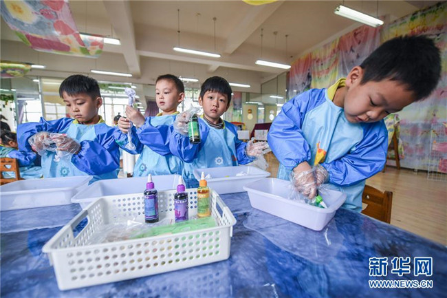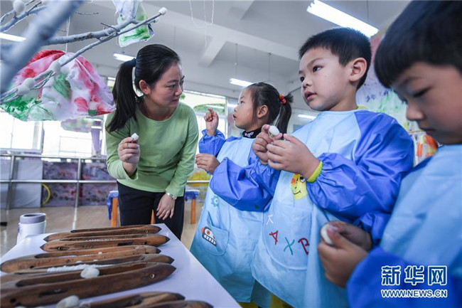 今年以來,浙江省長興縣夾浦鎮(zhèn)中心幼兒園依托當(dāng)?shù)貍鹘y(tǒng)布藝文化基礎(chǔ)開設(shè)“七彩課堂”,引進(jìn)布藝、扎染等傳統(tǒng)工藝課程,讓孩子們感受民間工藝的魅力。 新華社記者 徐昱 攝