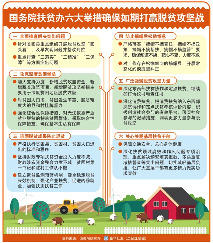 距離2020年底還剩400多天,國務(wù)院扶貧辦號召扶貧戰(zhàn)線不忘初心、牢記使命,堅定必勝信心,發(fā)揮脫貧攻堅專責(zé)部門主力軍作用,咬定目標(biāo),一鼓作氣,務(wù)求全勝。這六方面舉措包括: