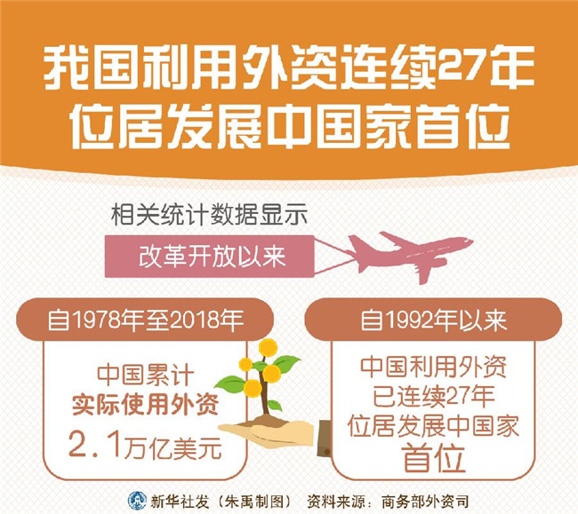 葉威透露,相關(guān)統(tǒng)計(jì)數(shù)據(jù)顯示,改革開(kāi)放以來(lái),自1978年至2018年,中國(guó)累計(jì)實(shí)際使用外資2.1萬(wàn)億美元;自1992年以來(lái),中國(guó)利用外資已連續(xù)27年位居發(fā)展中國(guó)家首位。