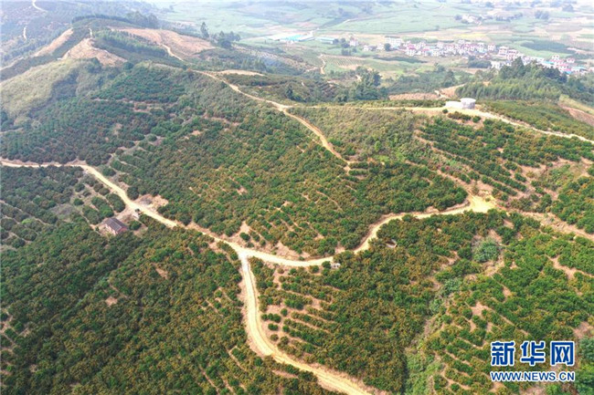 這是鹿寨縣平山鎮(zhèn)大陽(yáng)村的柑桔種植區(qū)(11月7日無人機(jī)拍攝)。