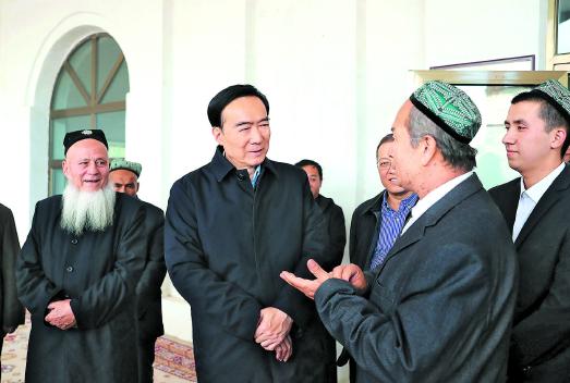 陳全國還來到高昌區(qū)紅星片區(qū)戈壁社區(qū)清真寺,調(diào)研宗教活動開展情況。他說,要全面貫徹黨的宗教工作基本方針,依法保障信教群眾正常宗教需求和正常宗教活動的開展,促進(jìn)宗教與社會主義社會相適應(yīng)。廣大宗教人士要大力弘揚(yáng)愛國愛教優(yōu)良傳統(tǒng),堅守正道、正信正行,引導(dǎo)各族信教群眾為實(shí)現(xiàn)社會穩(wěn)定和長治久安作出積極貢獻(xiàn)。