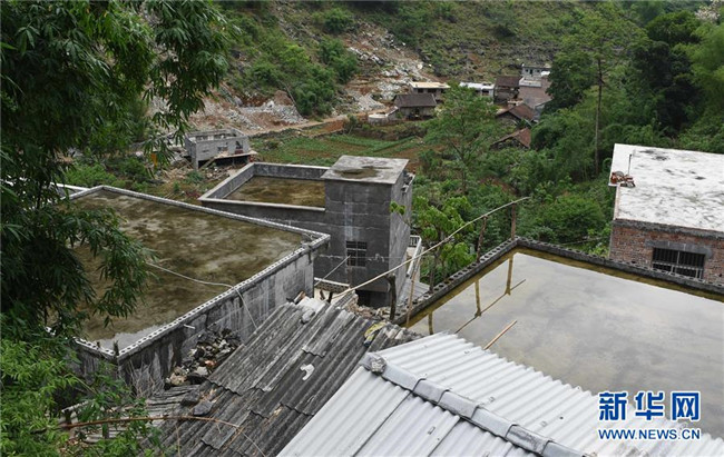 在廣西大化瑤族自治縣板升鄉(xiāng)弄勇村弄朝屯,房頂上的積水曾經(jīng)是村民的飲用水(2015年5月4日攝)。如今,弄朝屯幾乎家家戶戶都修建了家庭水柜。新華社記者 黃孝邦 攝