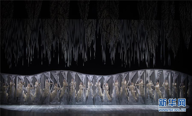 演員在音樂(lè)舞劇《云繡彝裳》第二章節(jié)“草木經(jīng)緯”中表演(11月15日攝)。新華社記者胡超攝