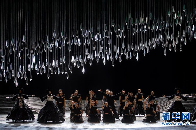 演員在音樂(lè)舞劇《云繡彝裳》第五章節(jié)“絲路云裳”中表演(11月15日攝)。新華社記者胡超攝