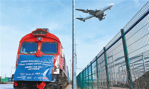 10月25日,中歐班列(義烏—列日)“世界電子貿(mào)易平臺(eWTP)菜鳥號”首趟列車抵達比利時列日物流多式聯(lián)運貨運場站。這是首個貫通中國長三角區(qū)域、中亞和歐洲并服務(wù)于跨境電子商務(wù)的專列。 新華社記者 潘革平攝