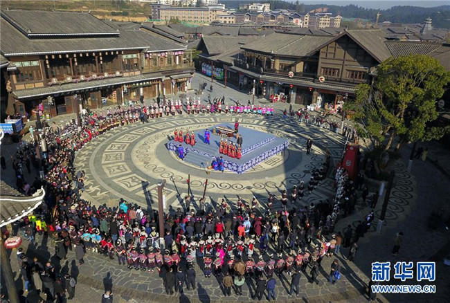 當(dāng)日,貴州省黔東南苗族侗族自治州丹寨縣迎來苗族傳統(tǒng)節(jié)日“祭尤節(jié)”,近千名身著節(jié)日盛裝的苗族群眾與游客齊聚丹寨萬達(dá)小鎮(zhèn),歡度傳統(tǒng)佳節(jié)。